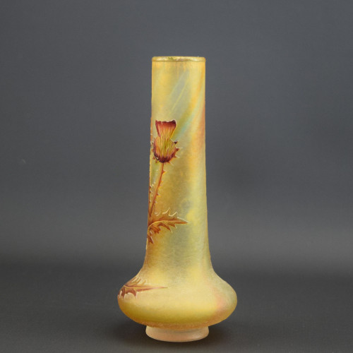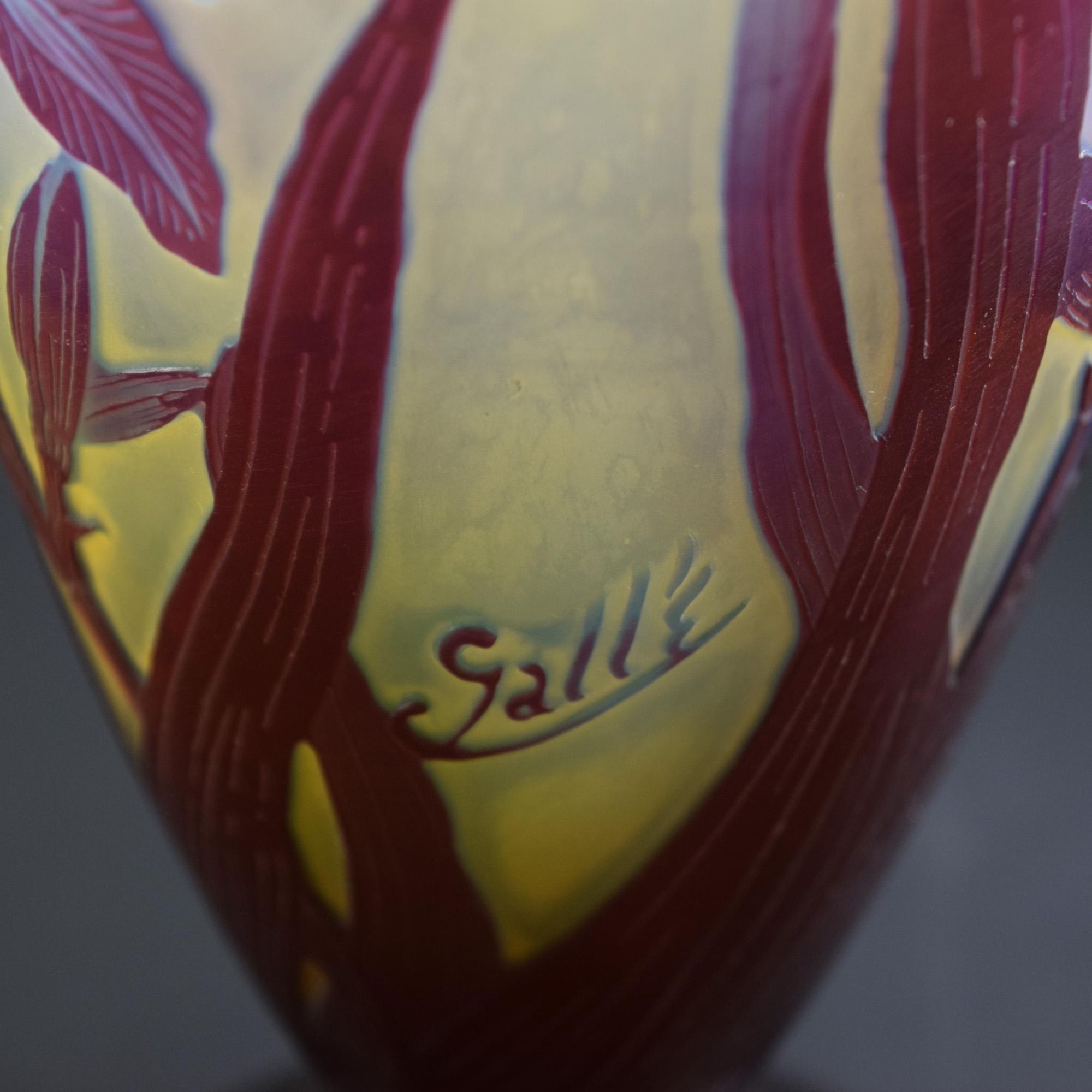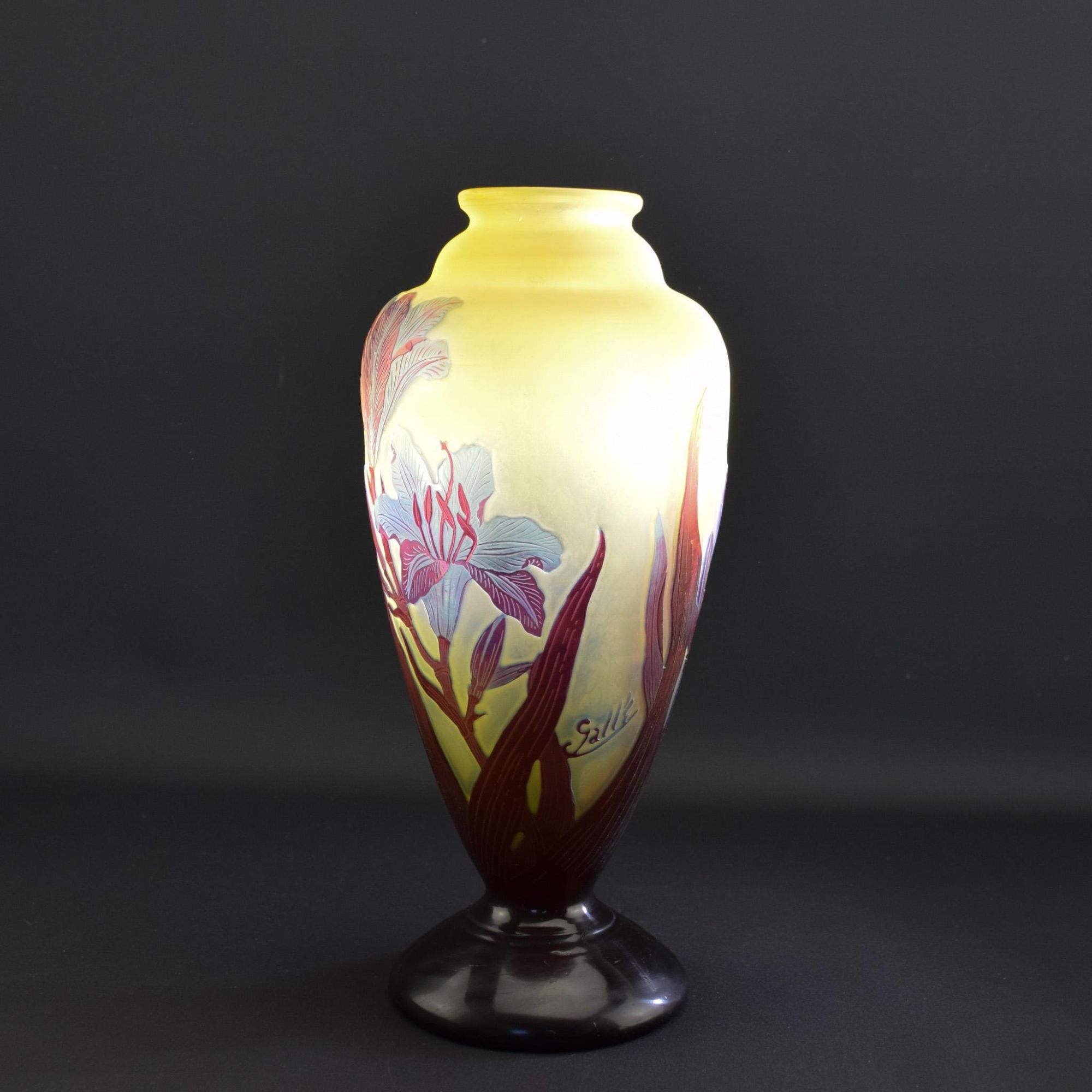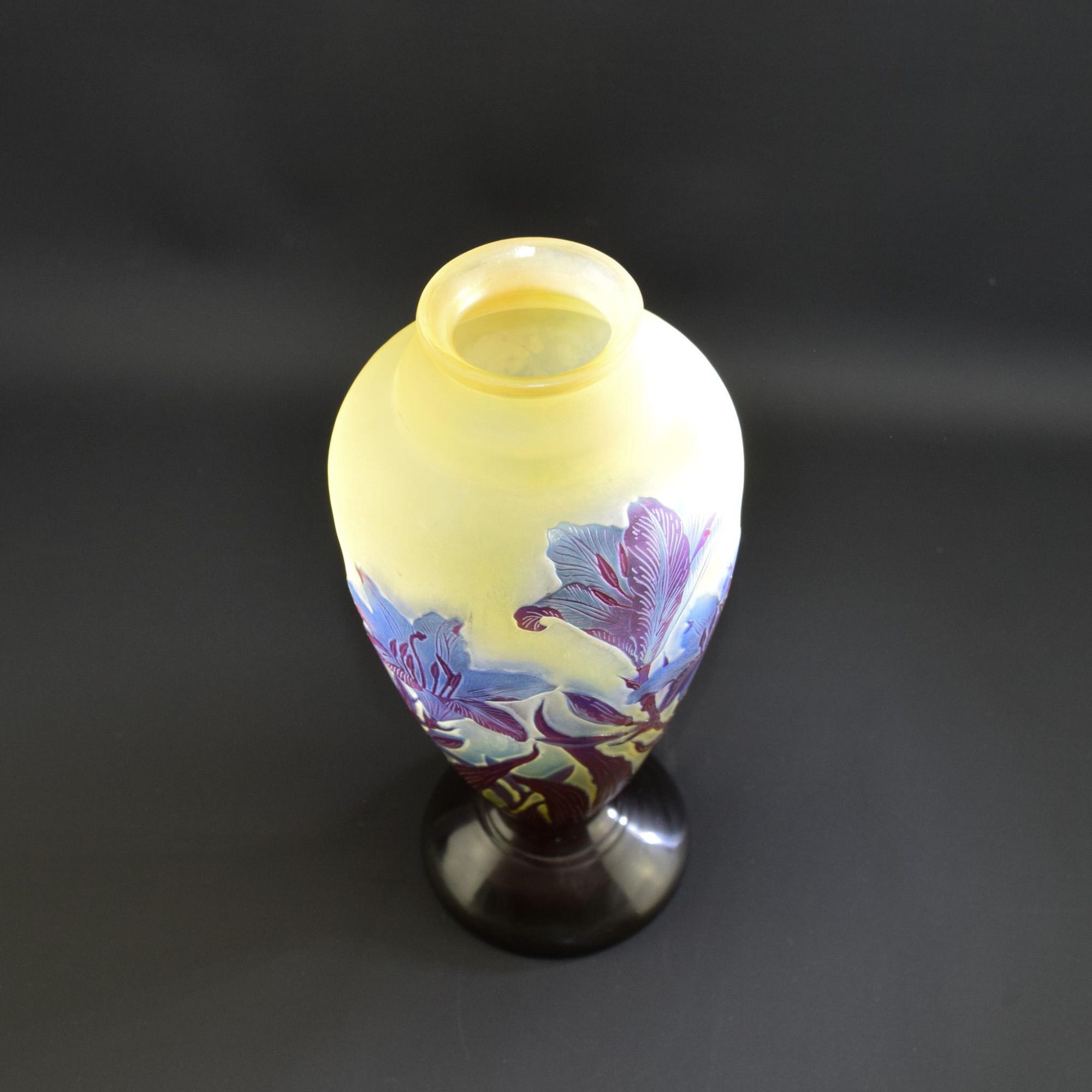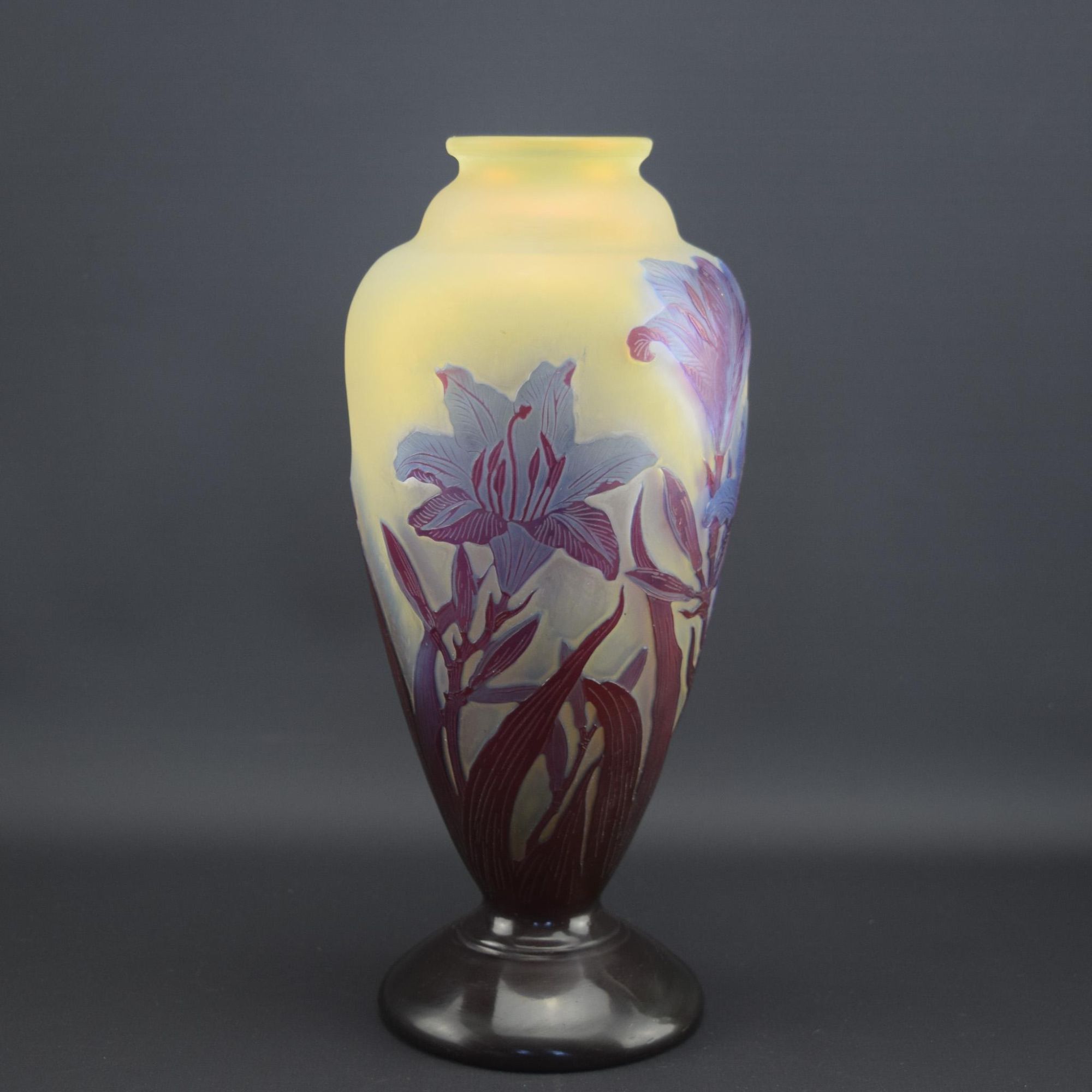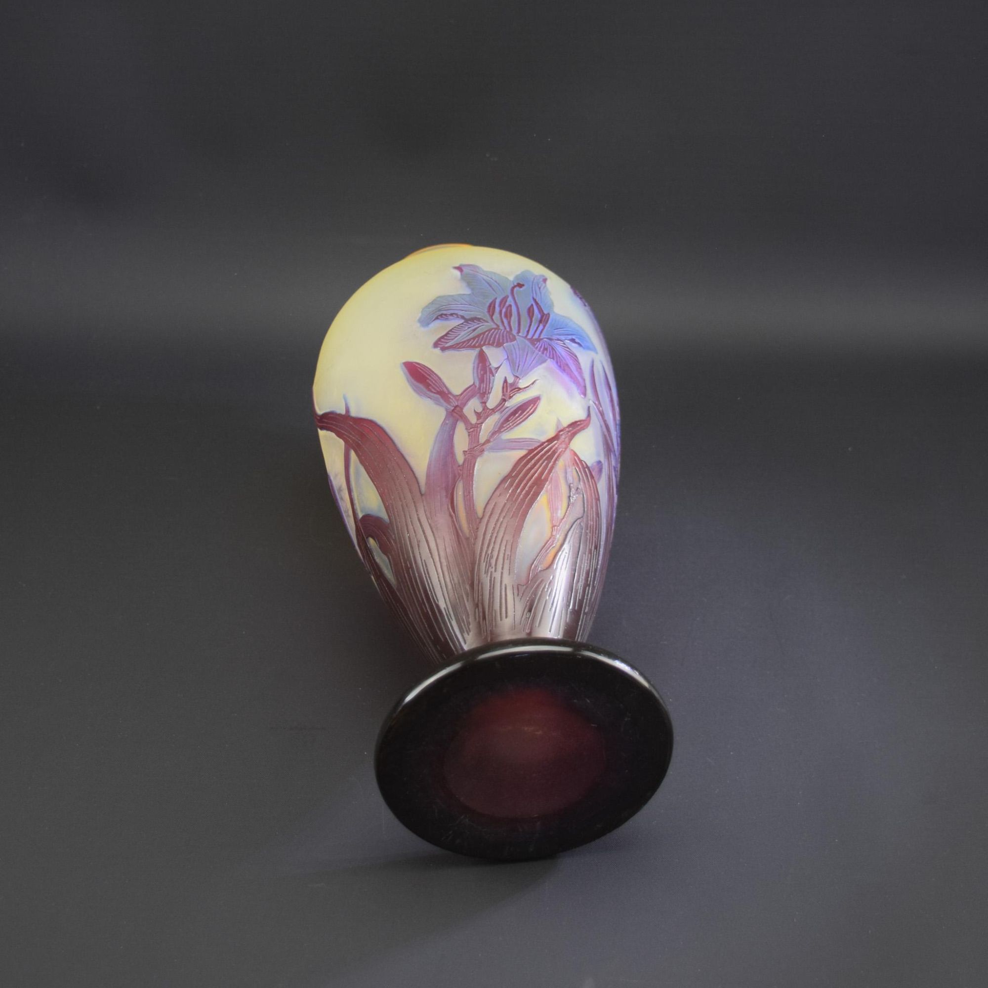 Beautiful three colour footed Galle cameo glass vase decorated with Lilies