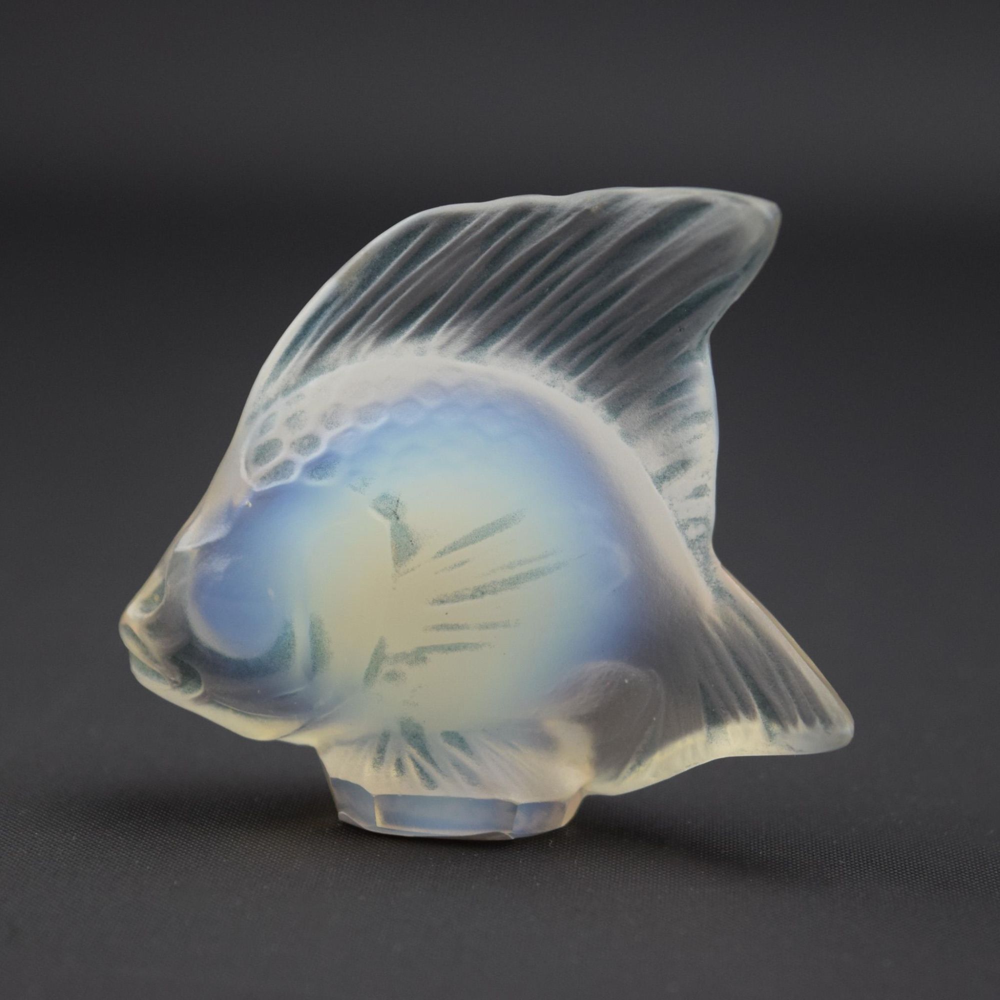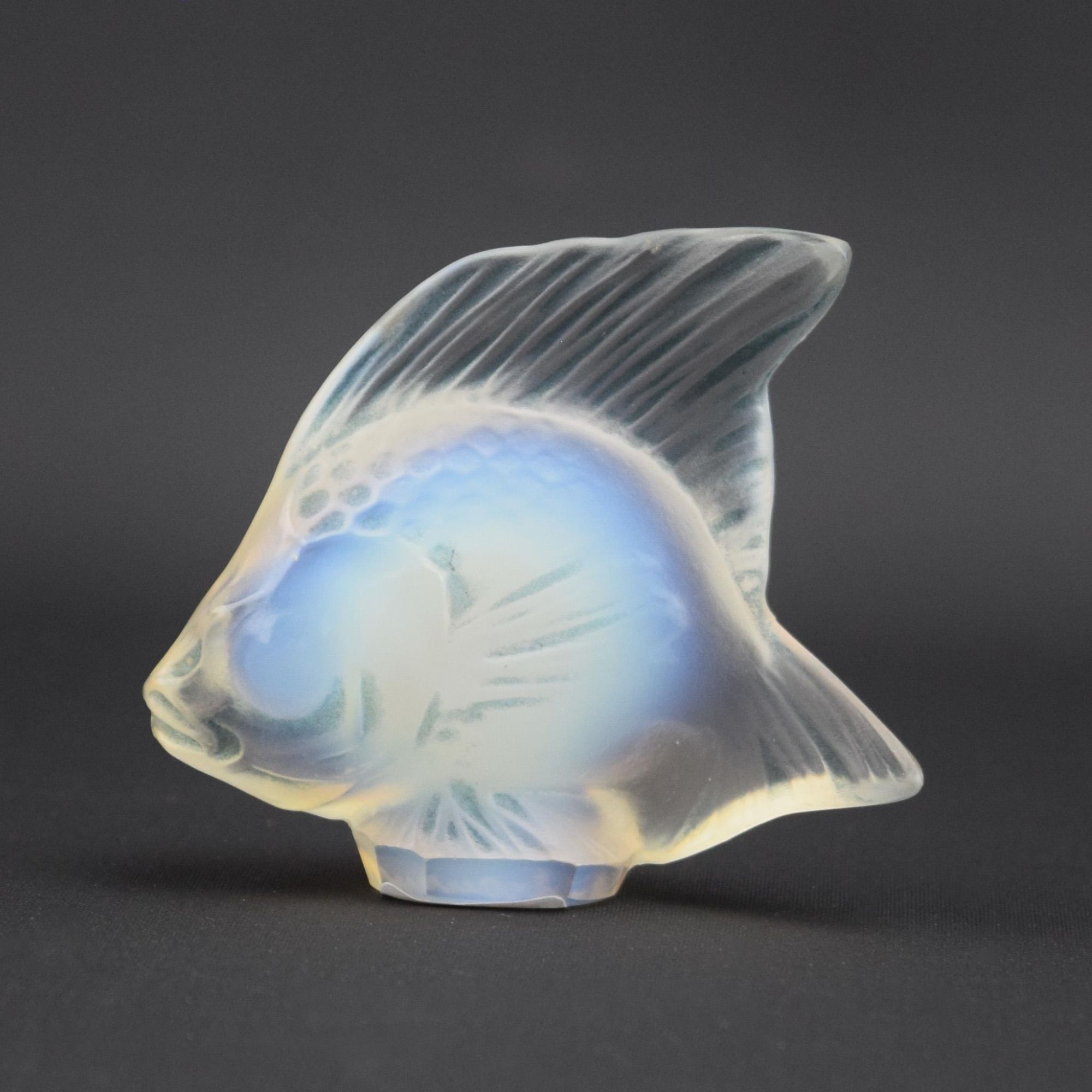 Rene Lalique opalescent and blue stained poisson fish Cachet