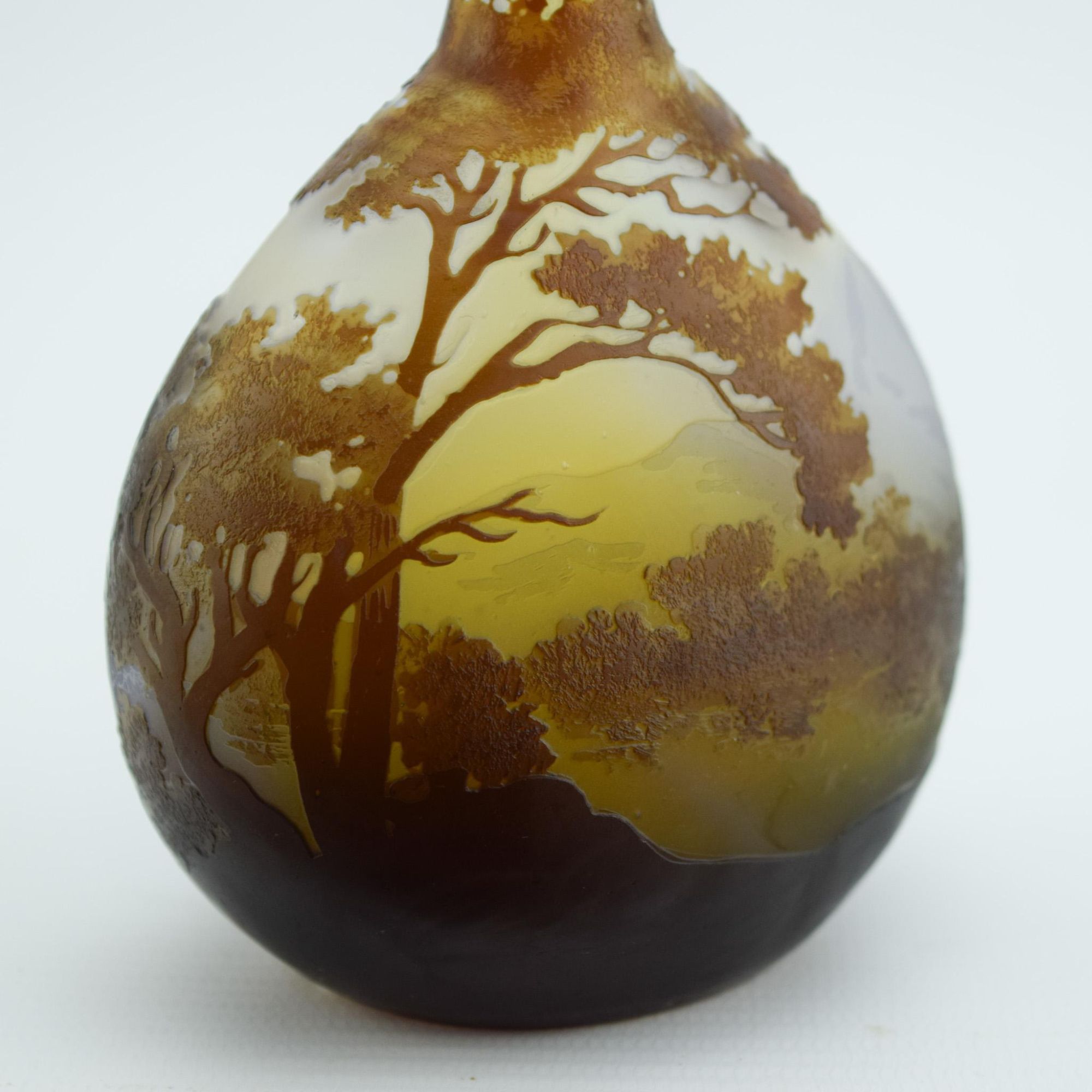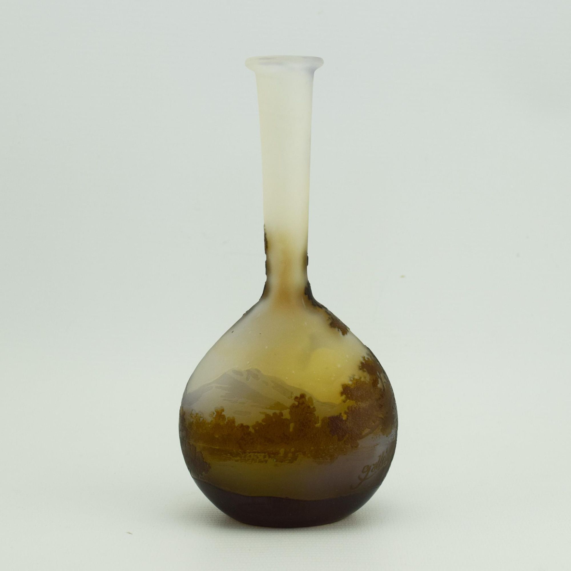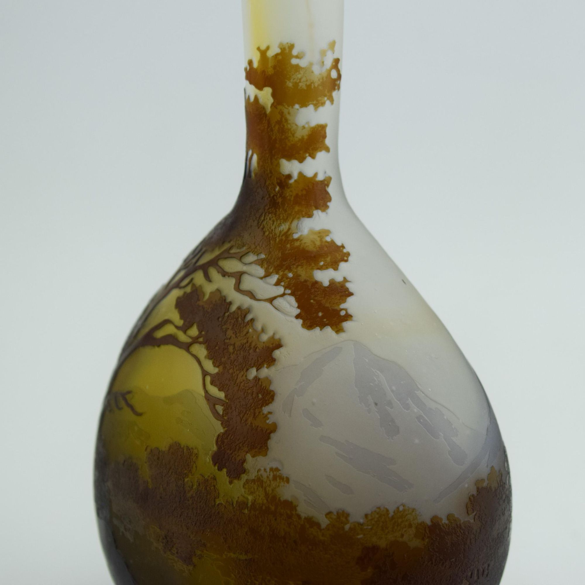 Emile Galle cameo glass Landscape banjo vase