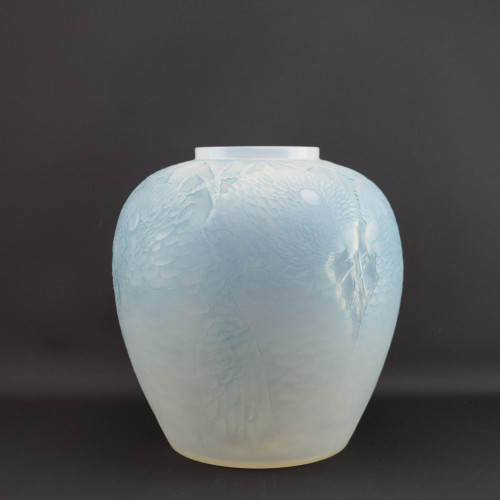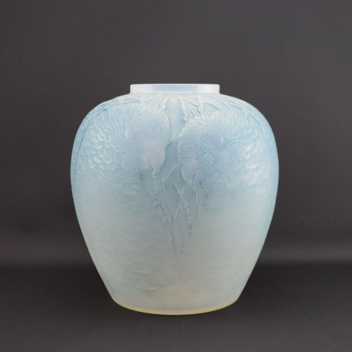 Rene Lalique opalescent Tourterelles lidded vase in deep opalescent glass